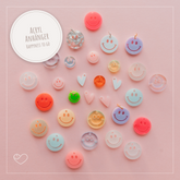 Ob als Kettenanhänger, Charm für Armbänder oder süßes DIY-Accessoire – die kleinen Hingucker (Ø ca. 1–1,5 cm) sind in vielen bunten, transparenten, glitzernden und pastelligen Farben erhältlich.