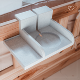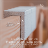 Auf den Bildern siehst du unsere Marmoroptik am Hausbett, aber natürlich gibt’s die Halterung auch in anderen Farben. Sollte deine Wunschfarbe oder -breite mal ausverkauft sein, meld dich einfach bei uns – wir zaubern dir garantiert die perfekte Halterung!