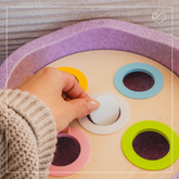 Kinder können die farbigen Chips in die passenden Ăffnungen legen, vergleichen, benennen und kombinieren â ganz im Sinne des offenen, freien Spiels.