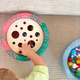 Die Lochplatte ist eine wunderbare Ergänzung für jedes Kinderzimmer und wächst mit dem Kind mit – vom freien Entdecken bis zu gezielten Lernspielen.