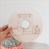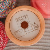 • Lasergraviertes Motiv: Waschmaschine, Wäschekorb & Waschmittel